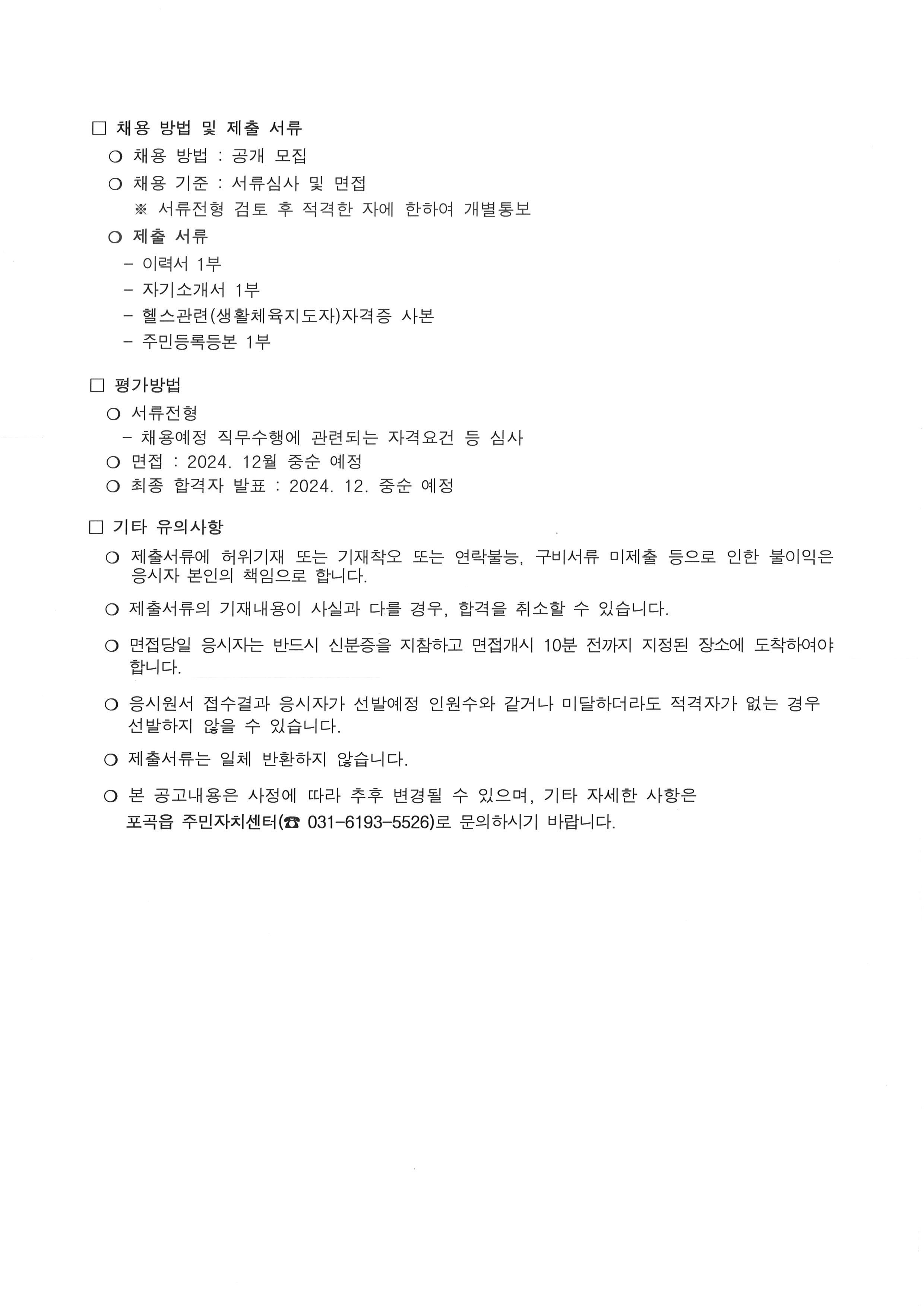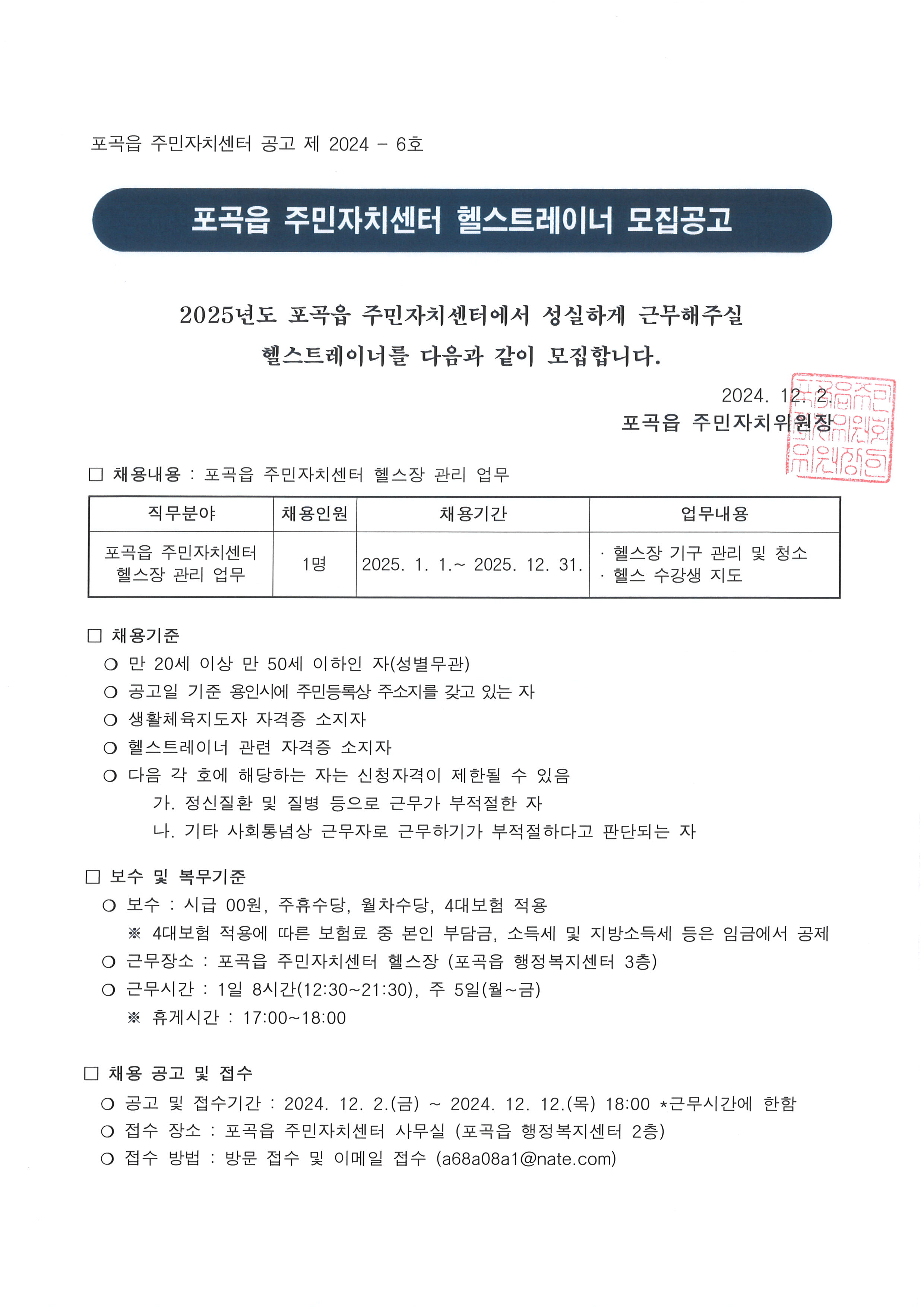 2025년도 주민자치센터 헬스트레이너 모집공고