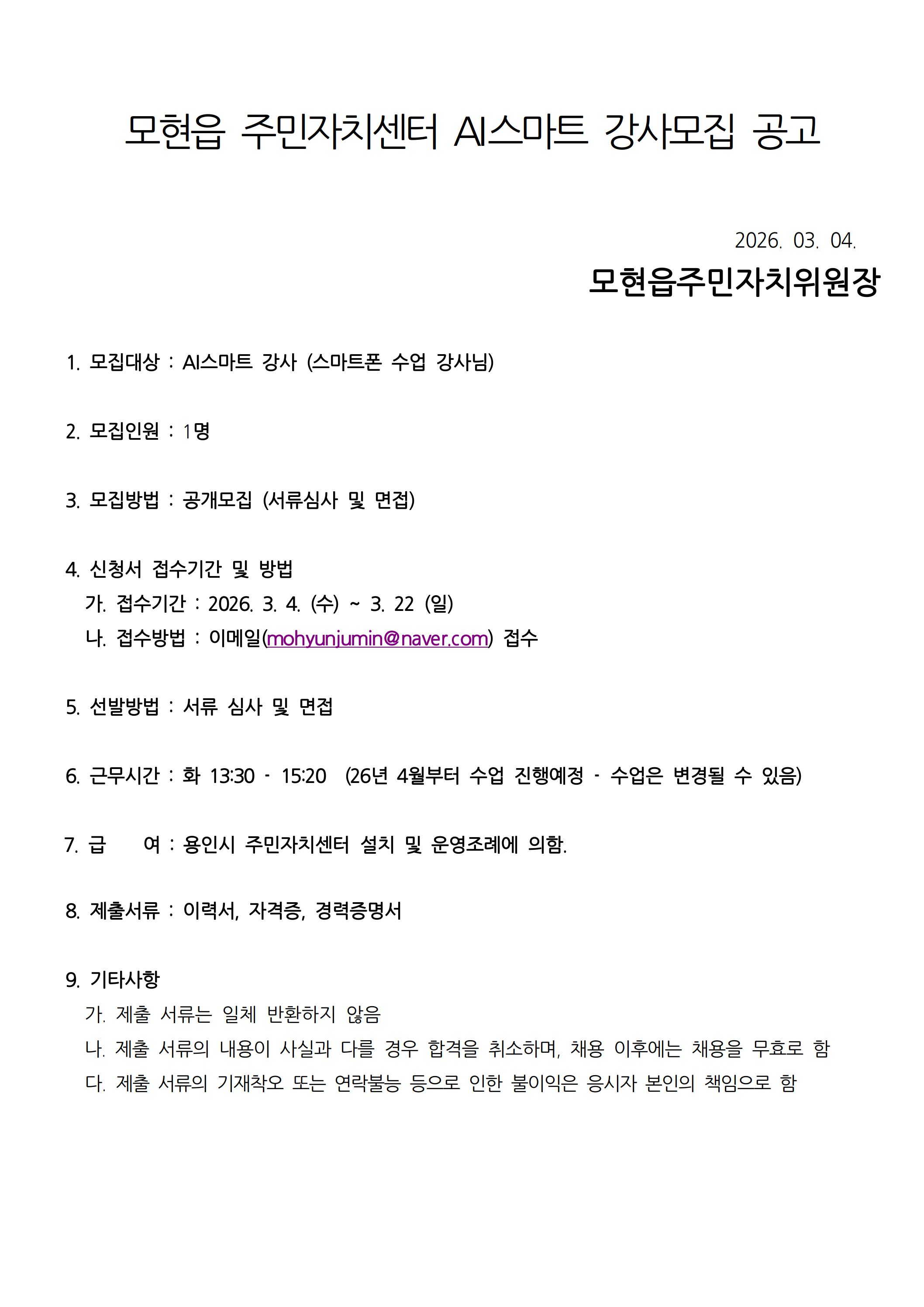 AI스마트 프로그램 강사 모집공고