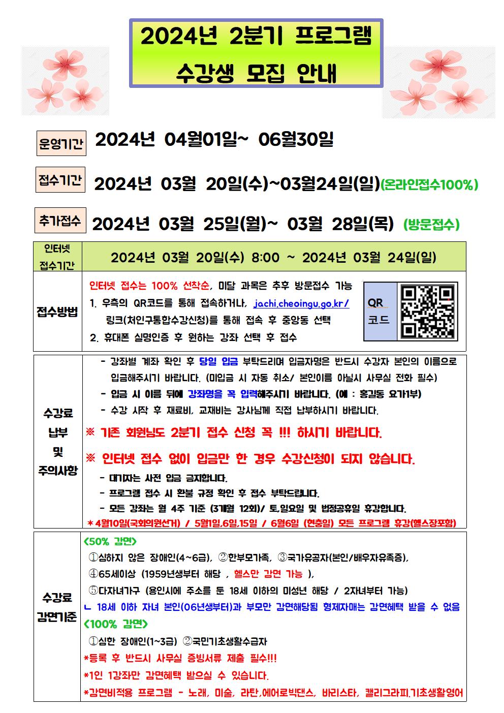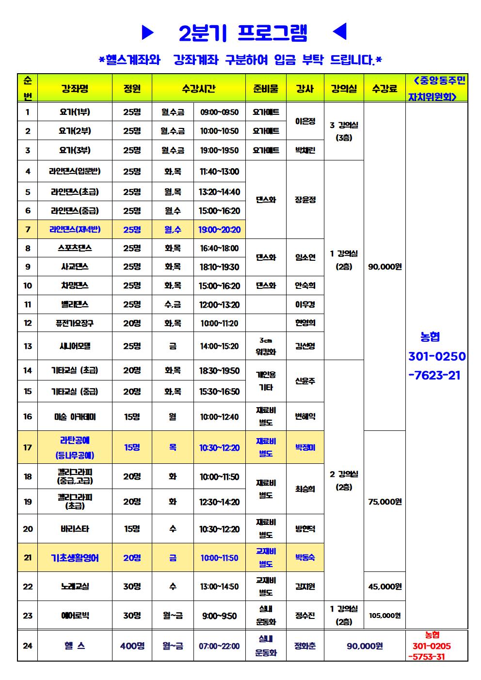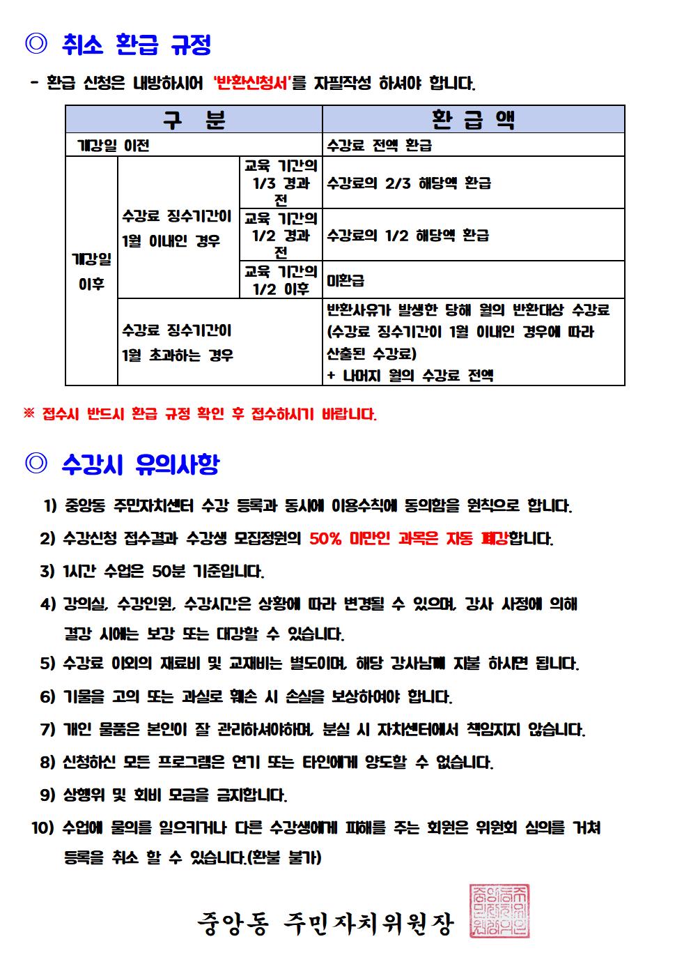 중앙동주민자치센터 2024년 2분기 (04~06월) 수강생 모집