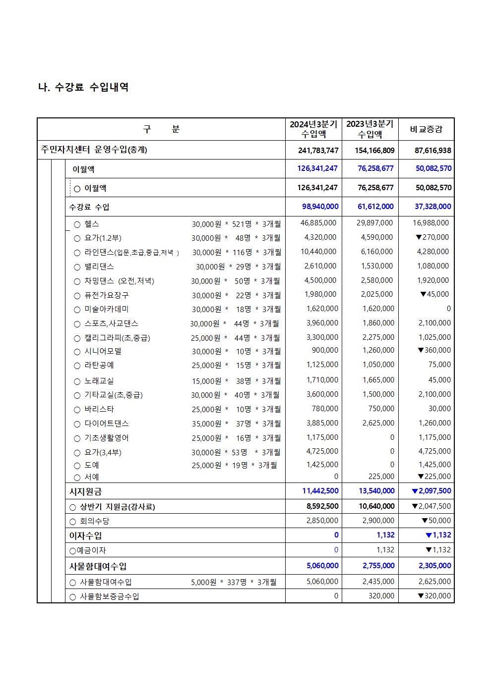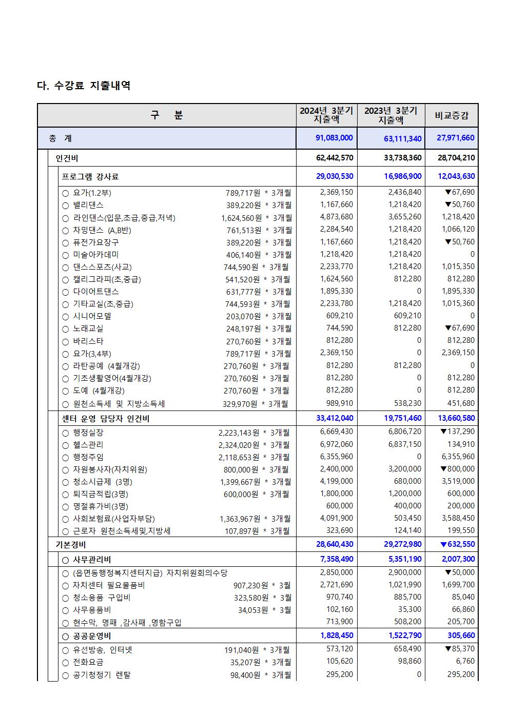 중앙동주민자치센터3분기프로그램 수입.지출내역공고