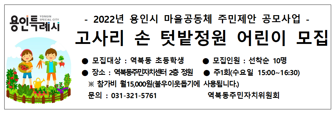 고사리 손 텃밭정원 어린이 추가모집을 아래와 같이 합니다.