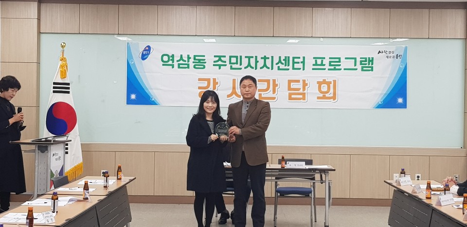 위원님과 강사님들이 한자리에 모여 주민자치센터 활성화 방안 토의 수상하신 강사님 축하드립니다~^^ |